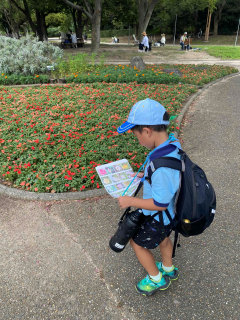 ①ポイントゲーム、②遊具遊び、③昆虫採取をしました。